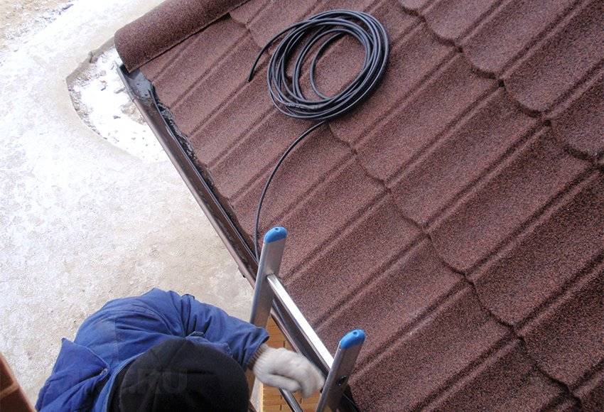 Монтаж системы кабелей для обогрева кровельного покрытия