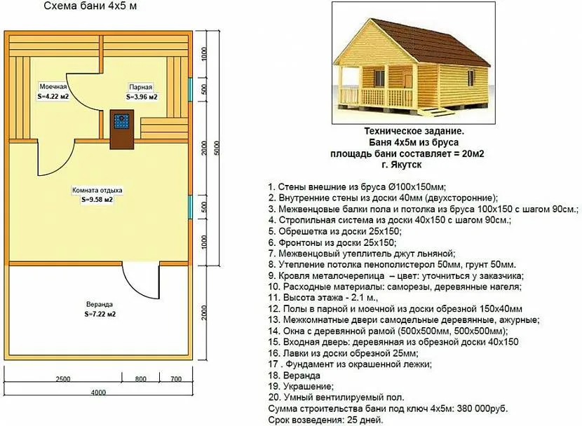 Создание проекта бани состоит из: