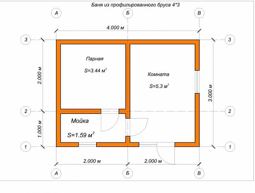Чертеж бани из брусаИсточник bepeza.ru