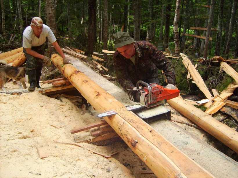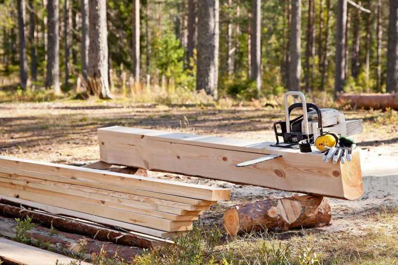 Бензопила – основной инструмент для строительства из дерева. С ее помощью можно подгонять все элементы под необходимые размеры, выравнивать бревна и брусья.