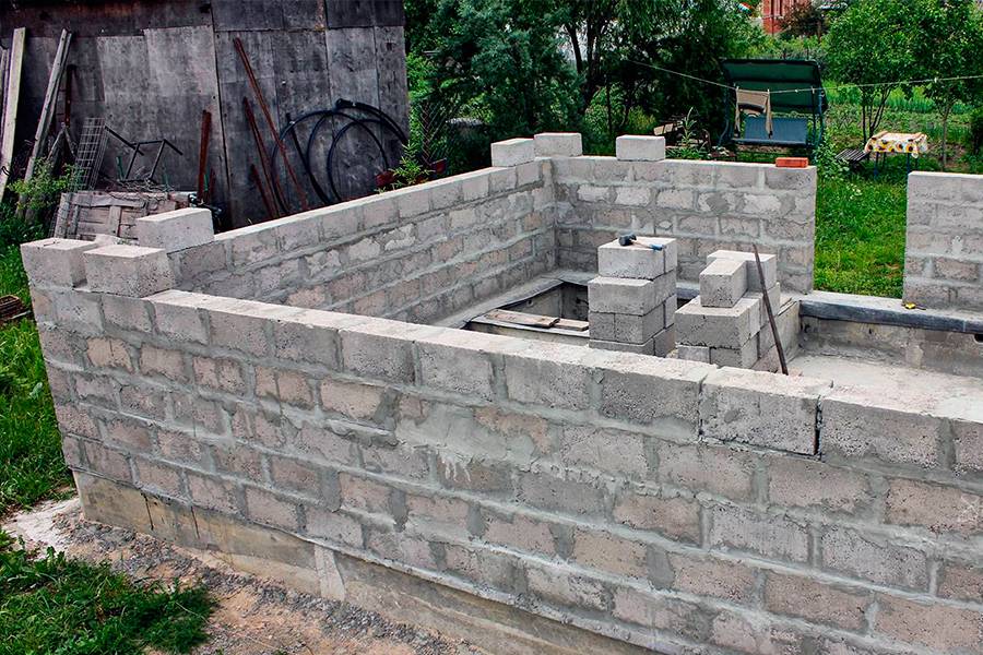 Для возведения бань из шлакоблоков также не требуется дорогой фундамент, позволяющий сэкономить до 50% бюджета. Обычно выбирается столбчатое или ленточное основание.