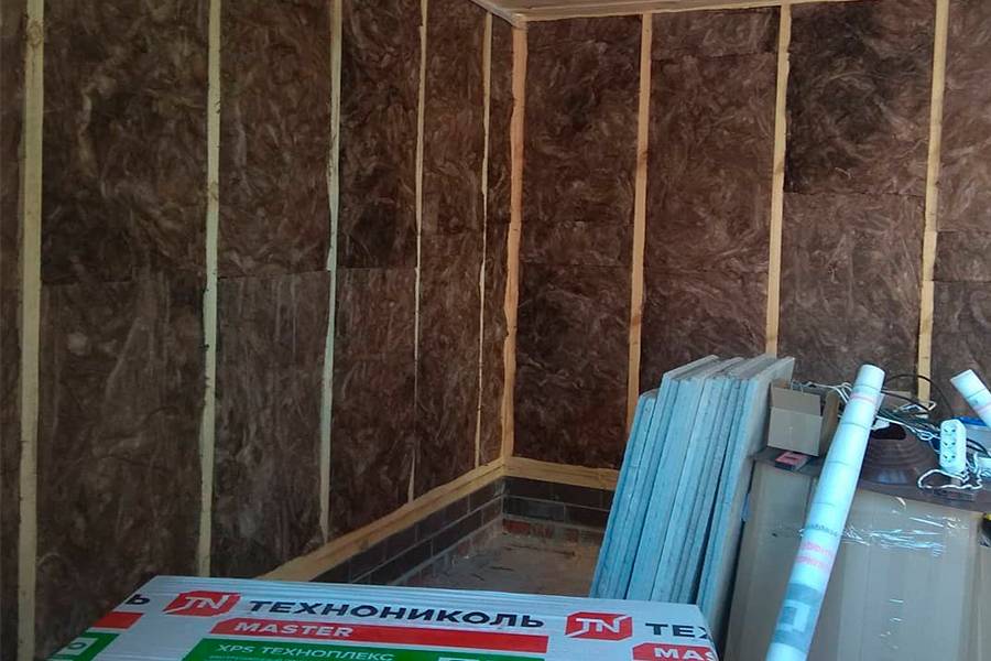 Так как каркасные бани имеют тонкие стены, они требуют обязательного утепления. Среди недорогих утеплителей чаще всего выбирается минеральная вата. Ее закладывают в стены в виде плит. Они не только доступные по стоимости, но и отличаются надежностью и продолжительным сроком службы при условии качественного монтажа.