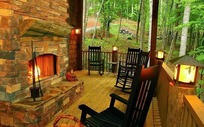 Застеклённая веранда с печью, отделанной натуральным камнемИсточник nasha-besedka.ru