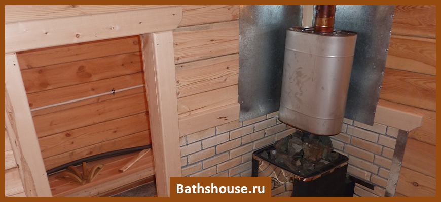 - при выведении топочного канала в предбанник или другое помещение проем отделывают прочным металлом, другим жаростойким материалом;