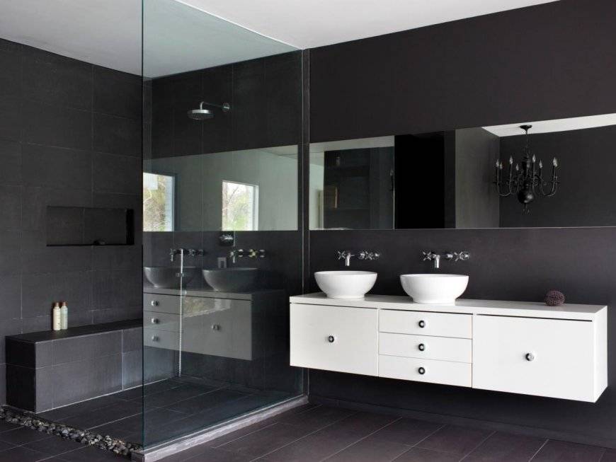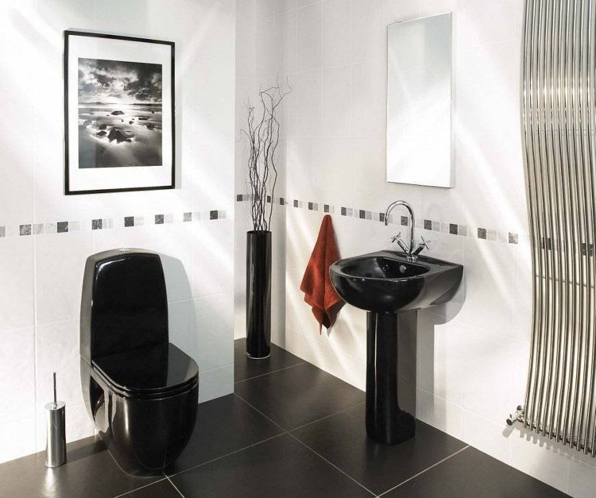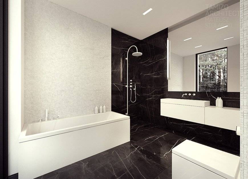 Если позволяют размеры ванной, можно сделать одну или две стены полностью черными.