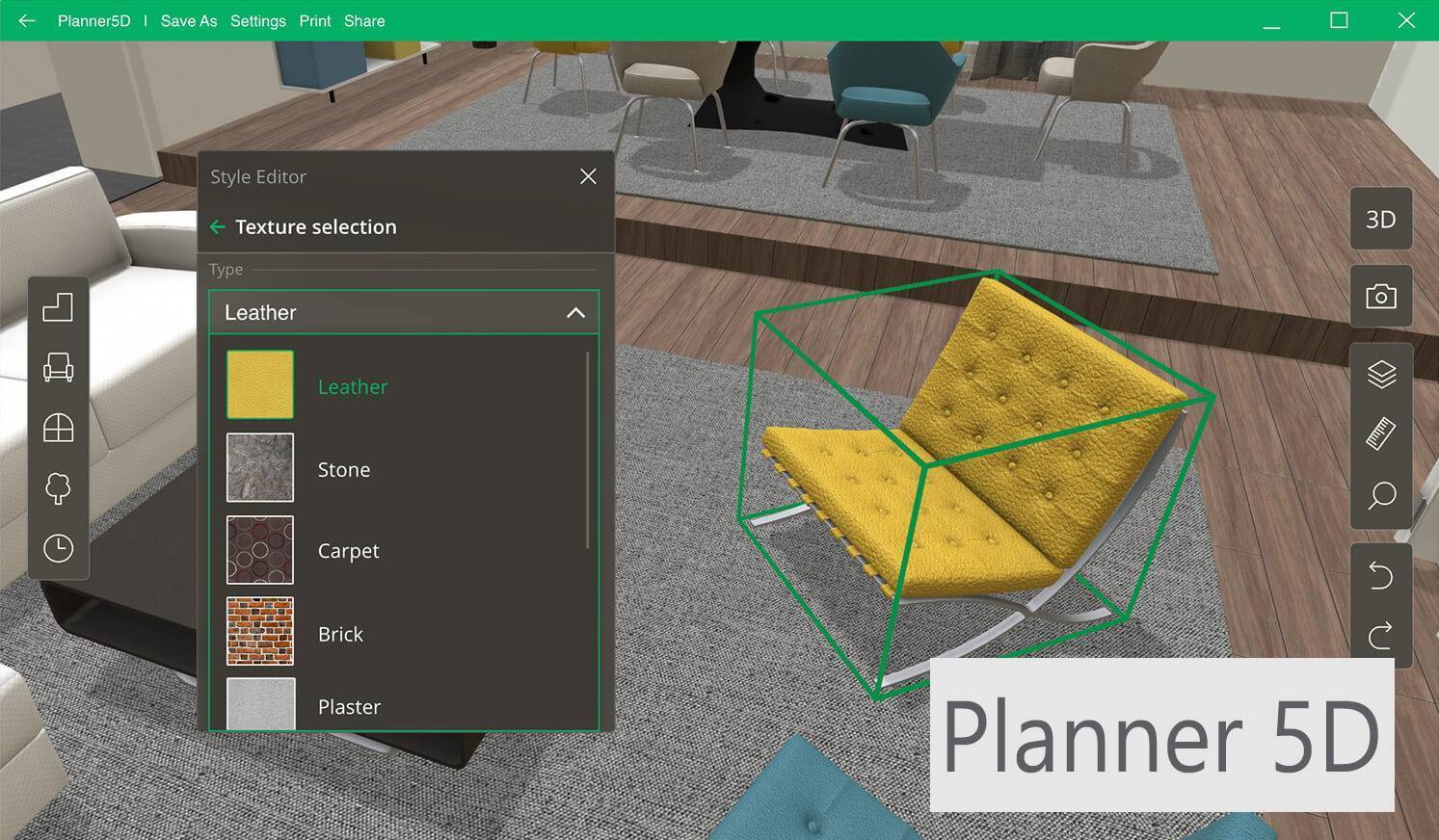 Бесплатный сервис с неплохим функционалом, в котором можно работать прямо через браузер. Позволяет создавать помещения различной формы, моделировать дома в несколько этажей, выполнять индивидуальную отделку и устанавливать мебель из каталога. Работать можно в 2Д и 3Д режимах. Дополнительно Planner 5D предлагает выполнить оформление придомовой территории.