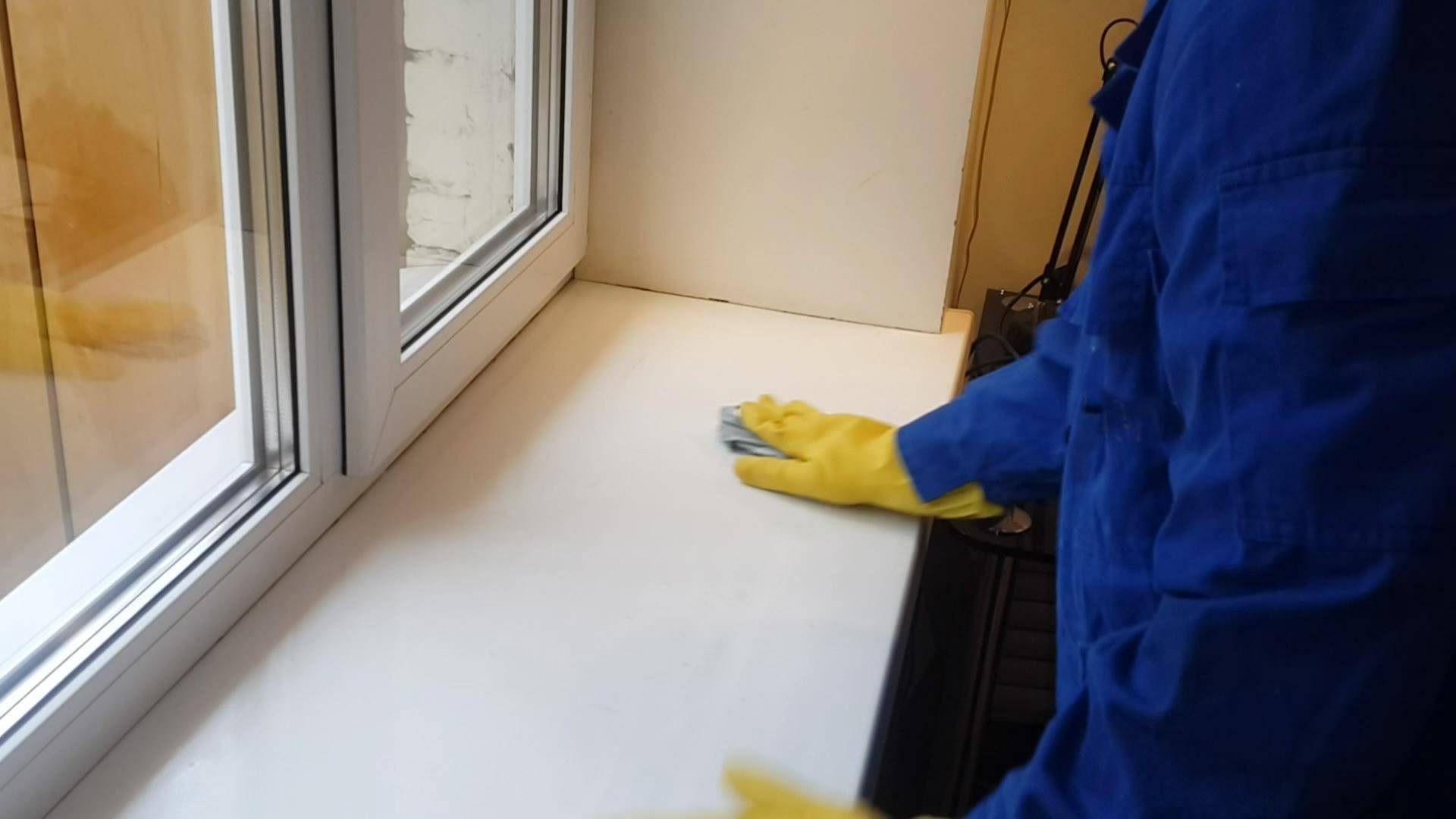 В результате химической реакции, грязь легко отходит от поверхности. Все, что остается — протереть пластиковый подоконник чистой влажной тканью.