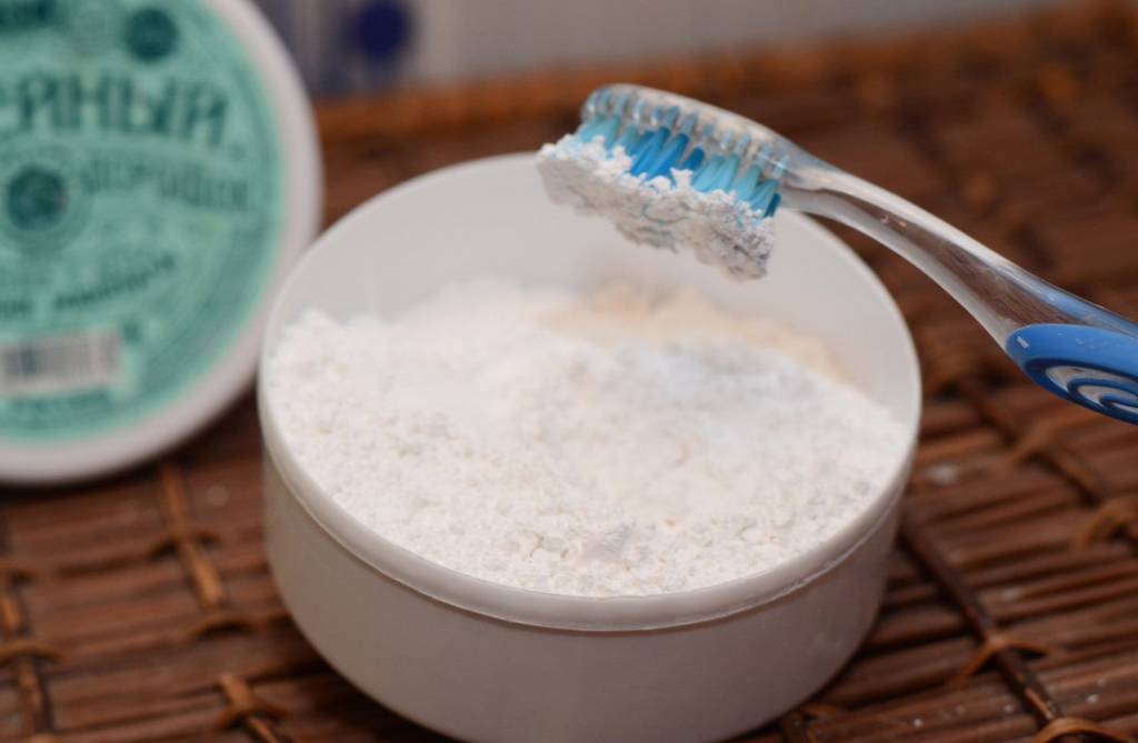 Для замешивания чистящей пасты необходимо использовать только белый мел и зубную пасту без каких-либо цветных пигментов.