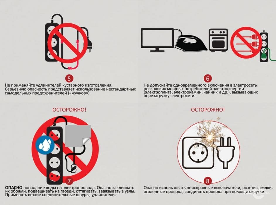 - Не включайте в одну розетку несколько бытовых электрических приборов (особенно большой мощности).