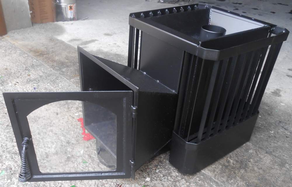 Подобный агрегат поставляется в разобранном виде, что обеспечивает легкость транспортировки. На спланированном ранее участке бани производится простой монтаж устройства. Чтобы усилить стыковку отдельных элементов, используется специальный герметик, способный противостоять воздействию высоких температур. Это вещество, как и стальной ящик для сборки золы, входит в общую комплектацию. На герметичной дверце присутствует художественное литье, украшающее интерьер парилки.