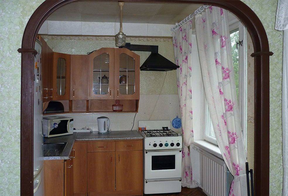 Арку на кухню желательно выполнить в стиле, гармонирующем с дизайном самой кухни и смежным с ней помещением. Вариантов оформления арочного проема множество, и они ограничены только вашей фантазией.