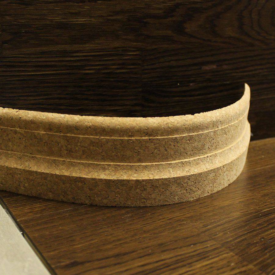 Некоторое время назад в моду вошел этот вид гибкого плинтуса. Пробковые бордюры, снаружи покрытые тонким слоем ламели ценных древесных пород, имеют элегантный внешний вид и выглядят не только стильно, но и дорого. Именно поэтому они нередко используются для оформления криволинейных участков.