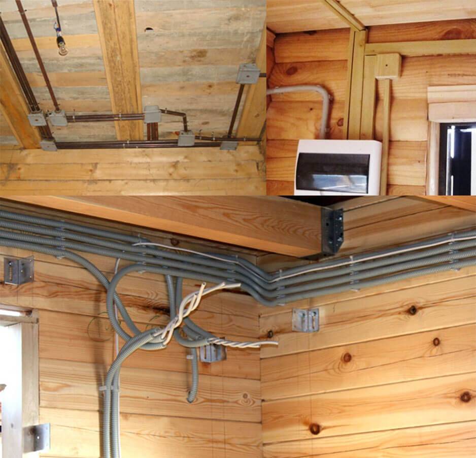 Считаю эти два способа прокладки проводов наиболее приемлемыми для зданий из древесины. Они не требую использования сложной технологии и отвечают правилам пожарной безопасности.