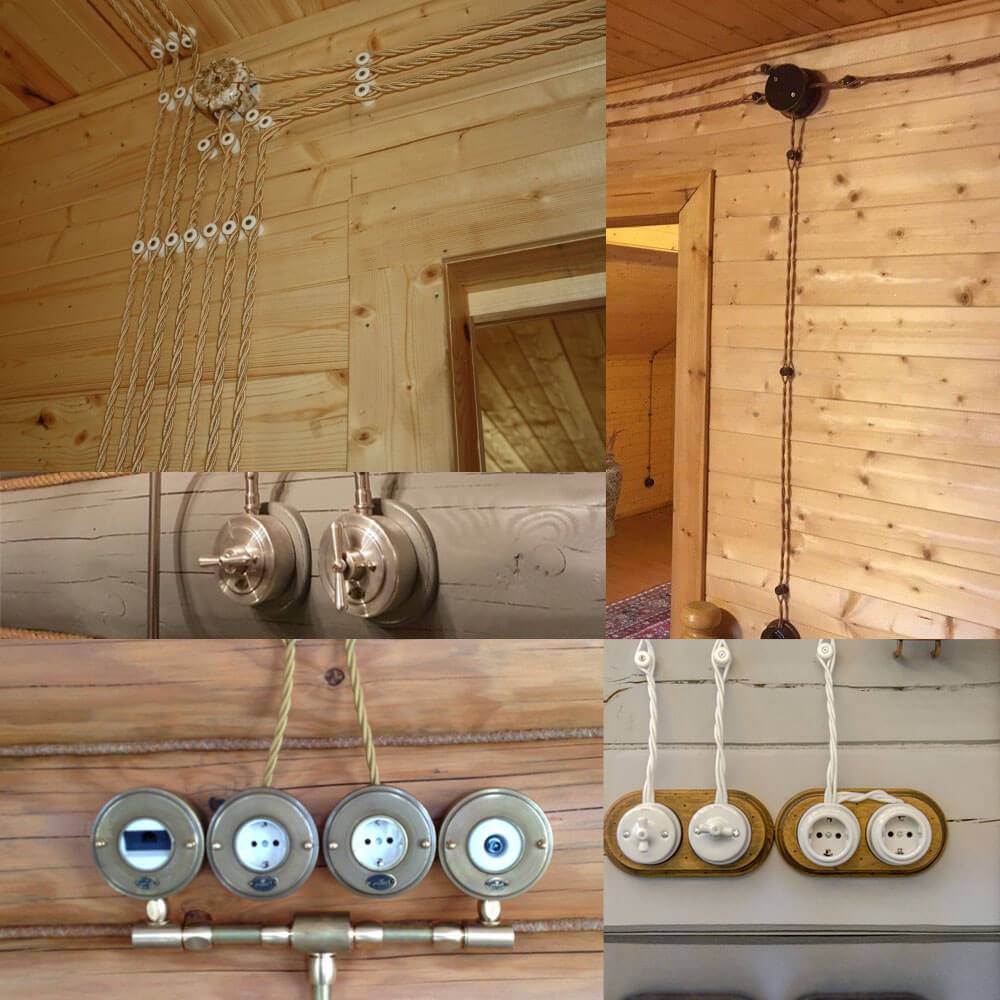 Самым безопасным и надежным способом считается ретро проводка на роликах, которая имитирует распространенную схему прокладки проводов прошлого века.