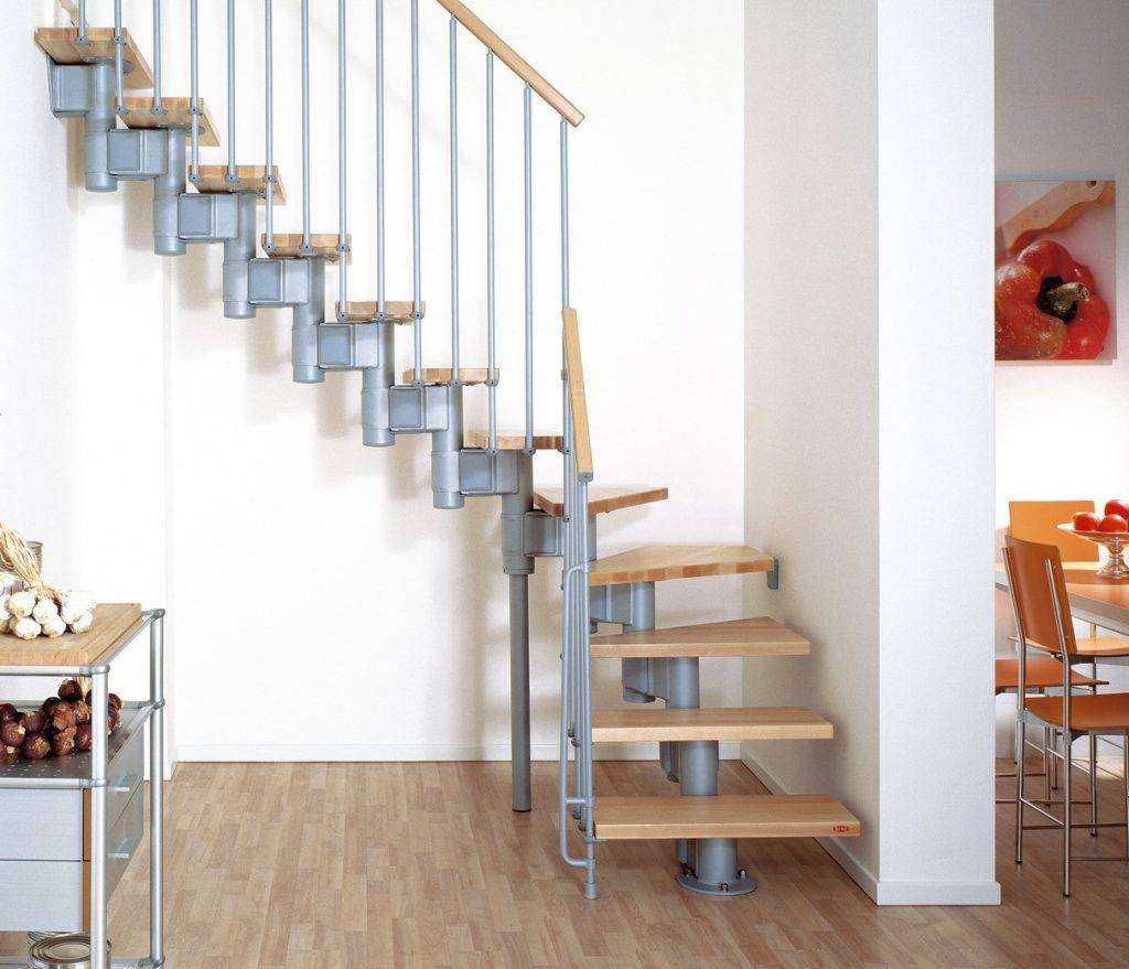 Лестницы с забежными ступенями. Разновидность предыдущей модели, только вместо площадок монтируются ступени. В таких конструкциях проступи имеют форму усеченного треугольника.