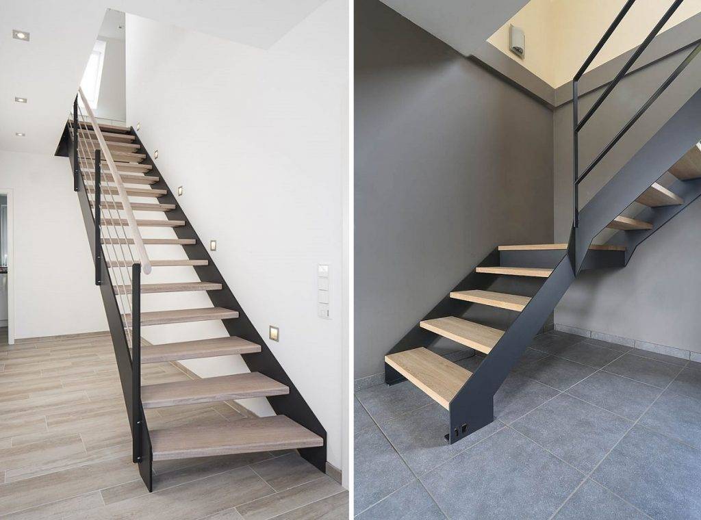 На тетивах. Это второй по распространенности вариант прямой стальной лестницы. В этом случае опора для каждой из ступеней расположена по бокам. В плюсах, так же как и в первом варианте, высокая надежность, к минусам относят сложность изготовления.