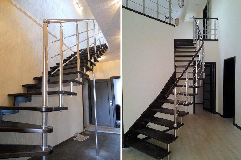 Все деревянные лестницы с металлокаркасом имеют ограждения, которые могут быть: