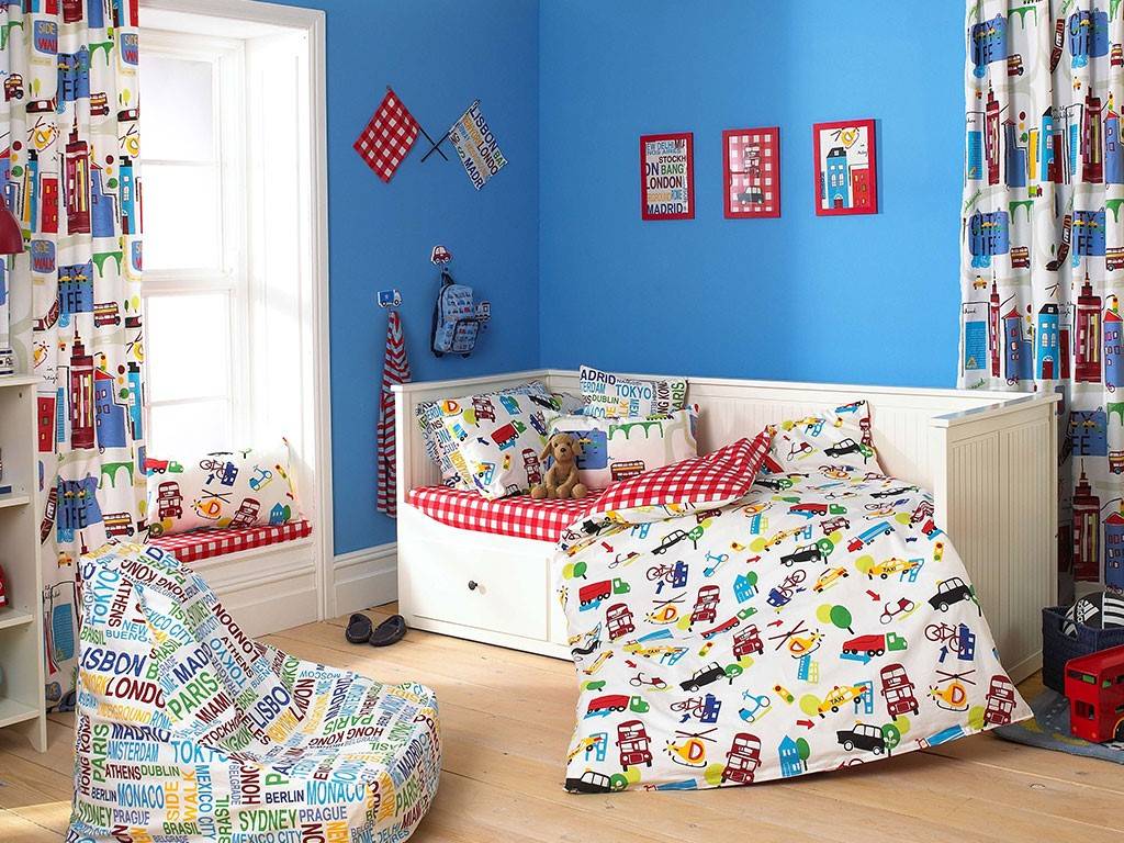 Наиболее подходящая цветовая гамма – синяя, зеленая, серая и белая с контрастными деталями. Но нельзя полагаться только на свой родительский вкус: в конечном итоге всё зависит от предпочтений ребенка.