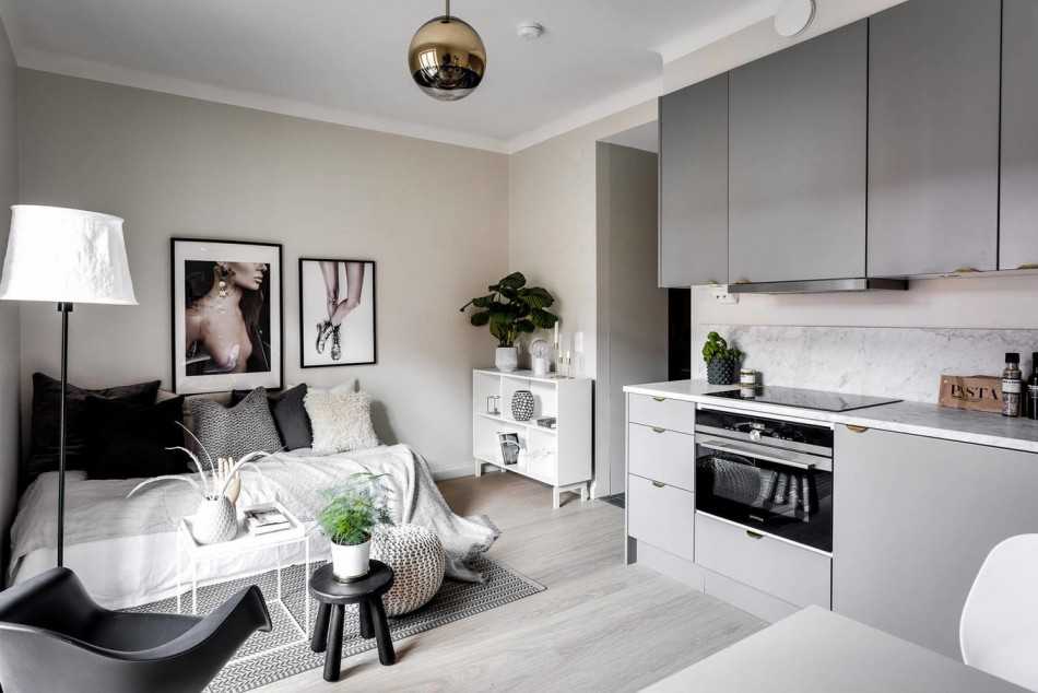 Важно лишь подбирать оттенки, гармонично сочетающиеся друг с другом. Варианты оформления гостиной со спальней в одной комнате представлены на фото далее
