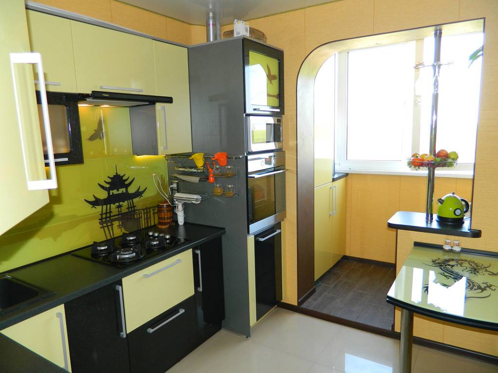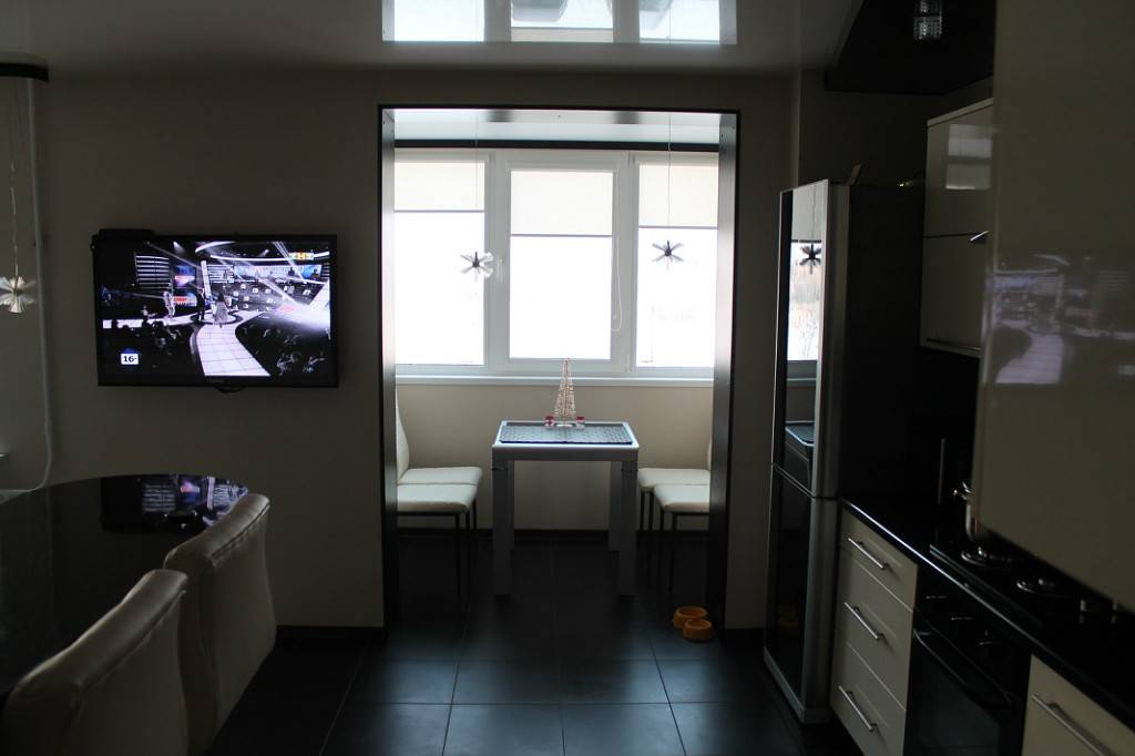 Если есть балкон, можно сделать перепланировку помещения — нужно просто убрать стену. Разрушать ее полностью не стоит, можно оставить нижнюю часть (до подоконника), соорудив из нее барную стойку. Она может выполнять роль обеденного стола, таким образом, на кухне появится больше свободного места.