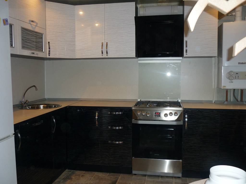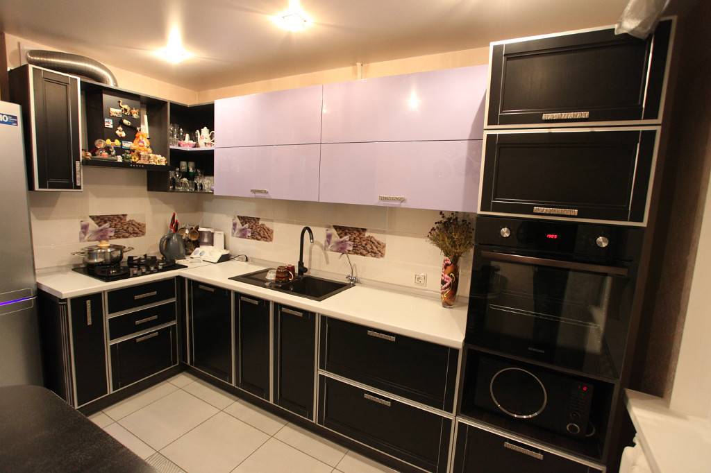 - Мебель с малым количеством шкафов. Он зрительно удлинит угловую кухню. Но дверцы в моделях должны быть раздвижными, а не распашными и мойка из одной секции. Приветствуется большое количество ниш, нижних тумб для встраивания бытовой техники.
