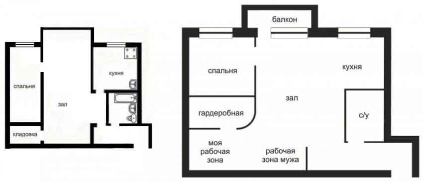 Схема перпланировки двухкомнатной квартиры