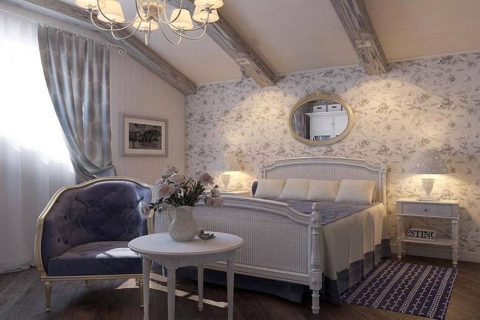 Отделка обычно светлая. Также в этом стиле часто используют комбинированный вариант: одну стену покрывают цветными обоями, а остальные делают однотонными. Для оклейки выбирают стену с окном или ту, о которую опирается изголовье кровати.