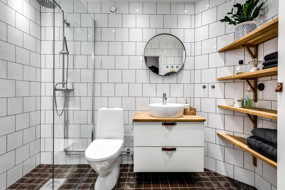 — Если дверь в ванную расположена сбоку — кабинку обычно монтируют или напротив входа, или по диагонали от него.