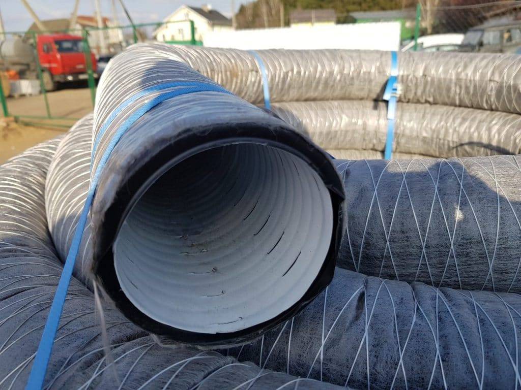 - гибкая дренажная труба — данная труба обычно бывает перфорированной, из-за чего очень сильно облегчается сам монтаж и соединение конструкции;