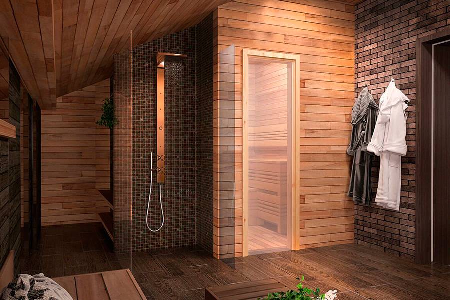 Главное, чтобы душ находился прямо на выходе из парной, в этом случае после времяпрепровождения в парной можно будет сразу попасть под холодный душ.