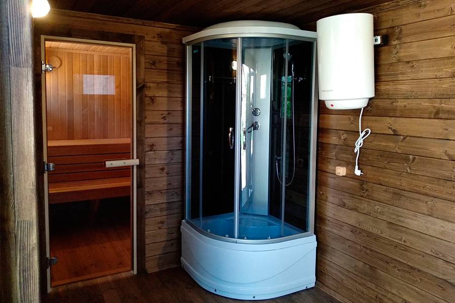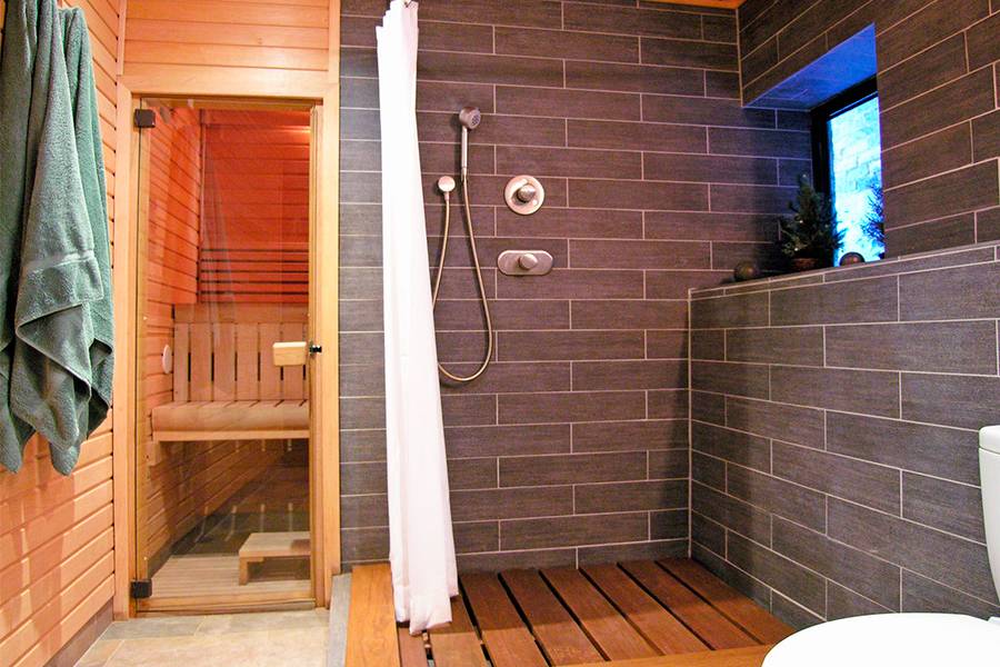 Такая душевая с финской сауной позволит укрепить здоровье и защититься от болезней в сезон простуды всей семье.