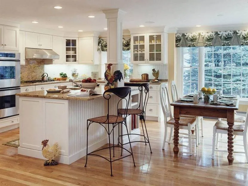 Подчеркнуть воздушность интерьера помогут легкие светлые шторы и скатерть в пастельных цветах.