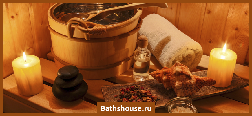 Стены парной обязательно обиты деревом, в процессе приема процедур используют эфирные масла.