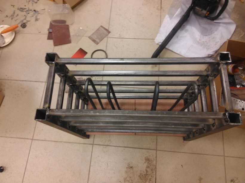 - Опорные ножки (если они предусмотрены в модели) также приваривают на данном этапе.