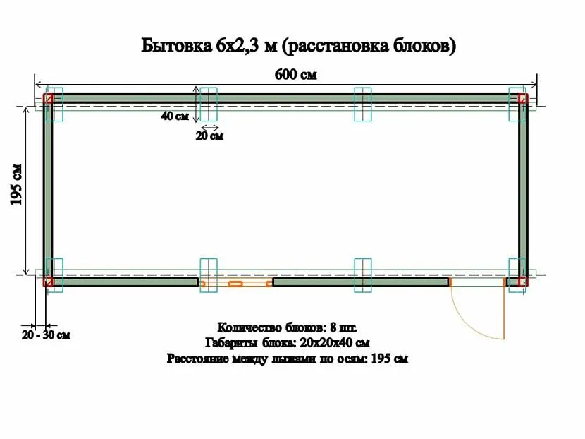 - фундаменты (опоры) должны обеспечивать зазор между уровнем грунта и низом бытовки высотой не менее 15 см – оптимальная величина 30-40 см;