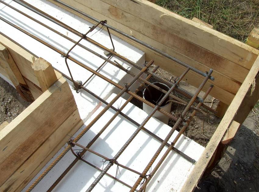 Армирование ленточного ростверка выполняется посредством пространственного армокаркаса, состоящего из двух продольных поясов арматуры
