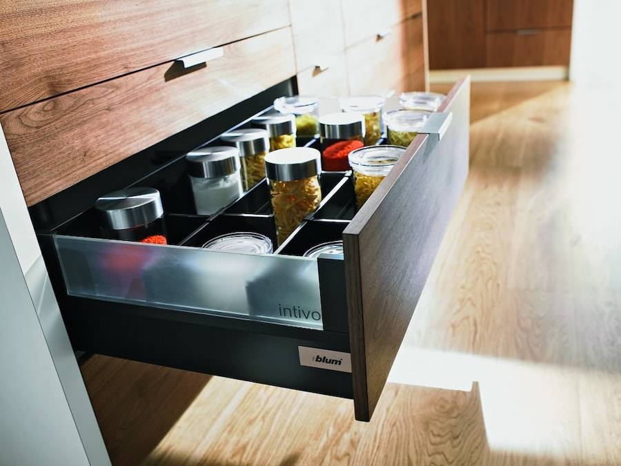 Системы именитого австрийского производителя, устанавливаемые на выдвижные ящики, поражают не только своей надежностью и функциональностью, но и завидной декоративностью.