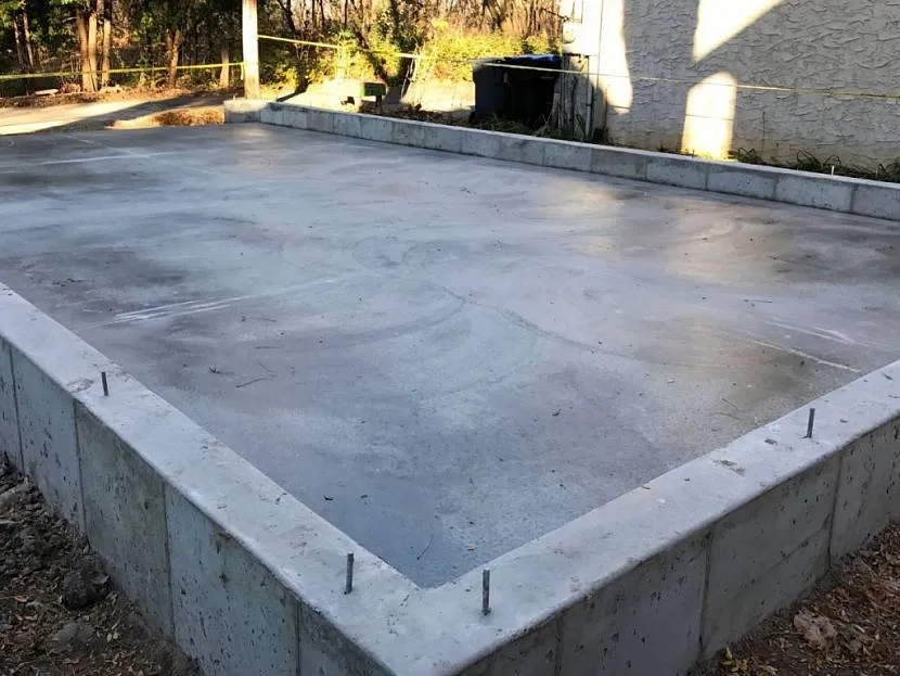При его выборе обязательно учитывается вес конструкции и вид грунта. При возведении стен из шлакоблоков достаточно обустройства мелкозаглубленного ленточного или столбчатого основания. Его можно залить из бетона или соорудить из тех же блоков.