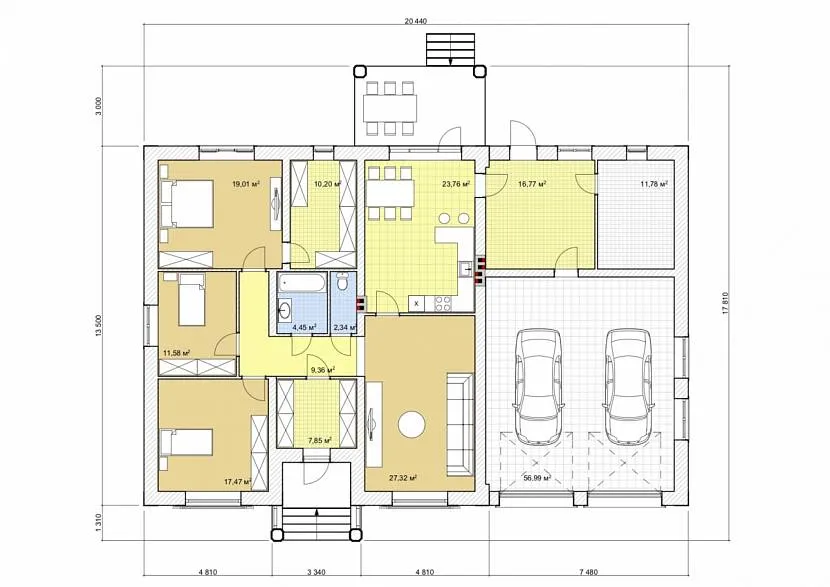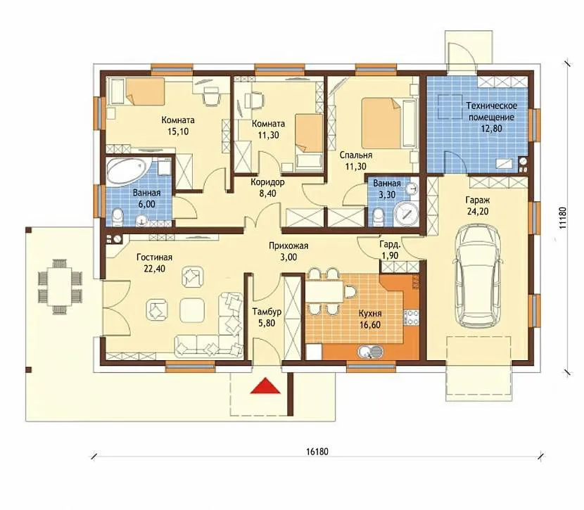 Крайне важно уделить должное внимание планировке одноэтажного дома с гаражом, и разместить все помещения таким образом, чтобы избежать нежелательного соседства. Например, это касается детской и гаража, которые не должны быть смежными. В идеале, между жилыми комнатами и помещением для хранения машины должно быть техническое помещение, кухня или санузел