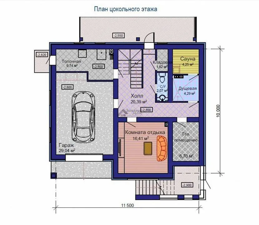 Размещение в цокольном этаже технической зоны и сауны.Источник zap-dom.ru