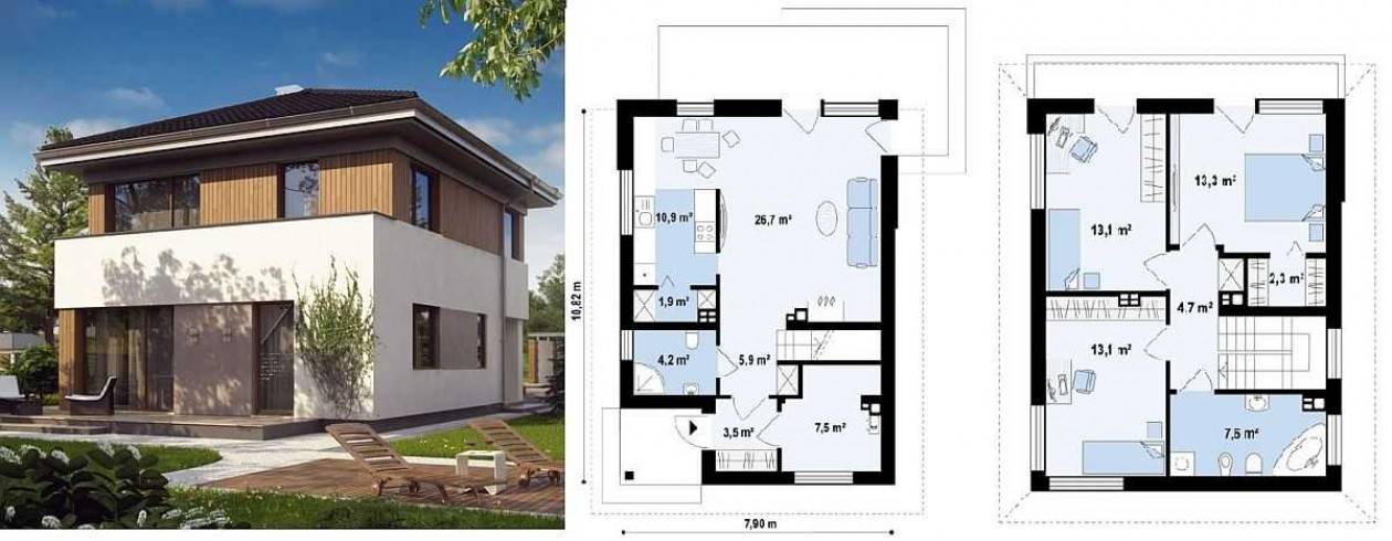 Недостаток количества жилой площади возможно компенсировать за счет второго или мансардного этажа.