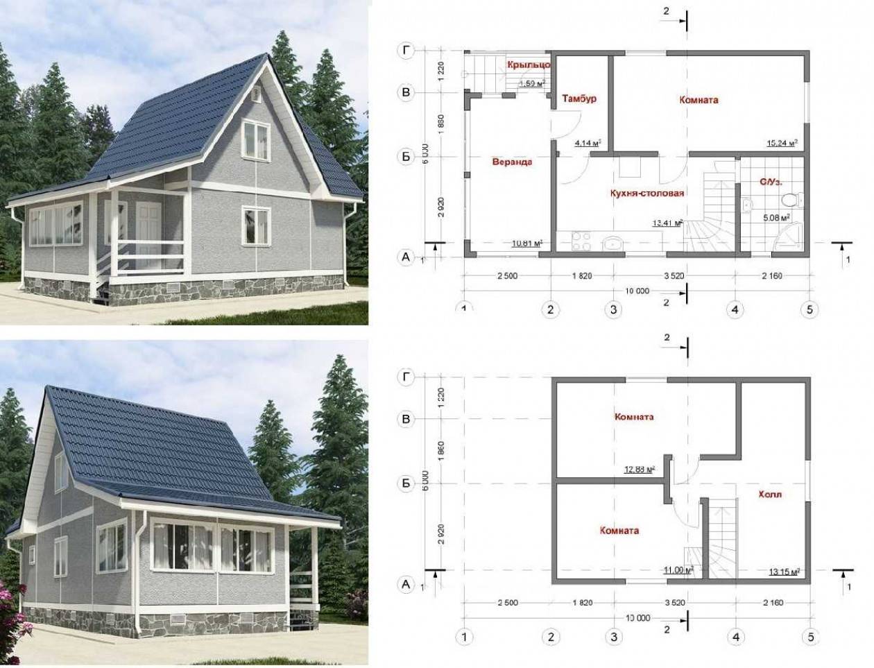 Обратите внимание, что приведенные выше проекты дачных домов с верандой имеют общий фундамент. Это надежно, так как даже при весеннем пучении почвы подвижек не будет. Но затраты на фундамент получаются значительные