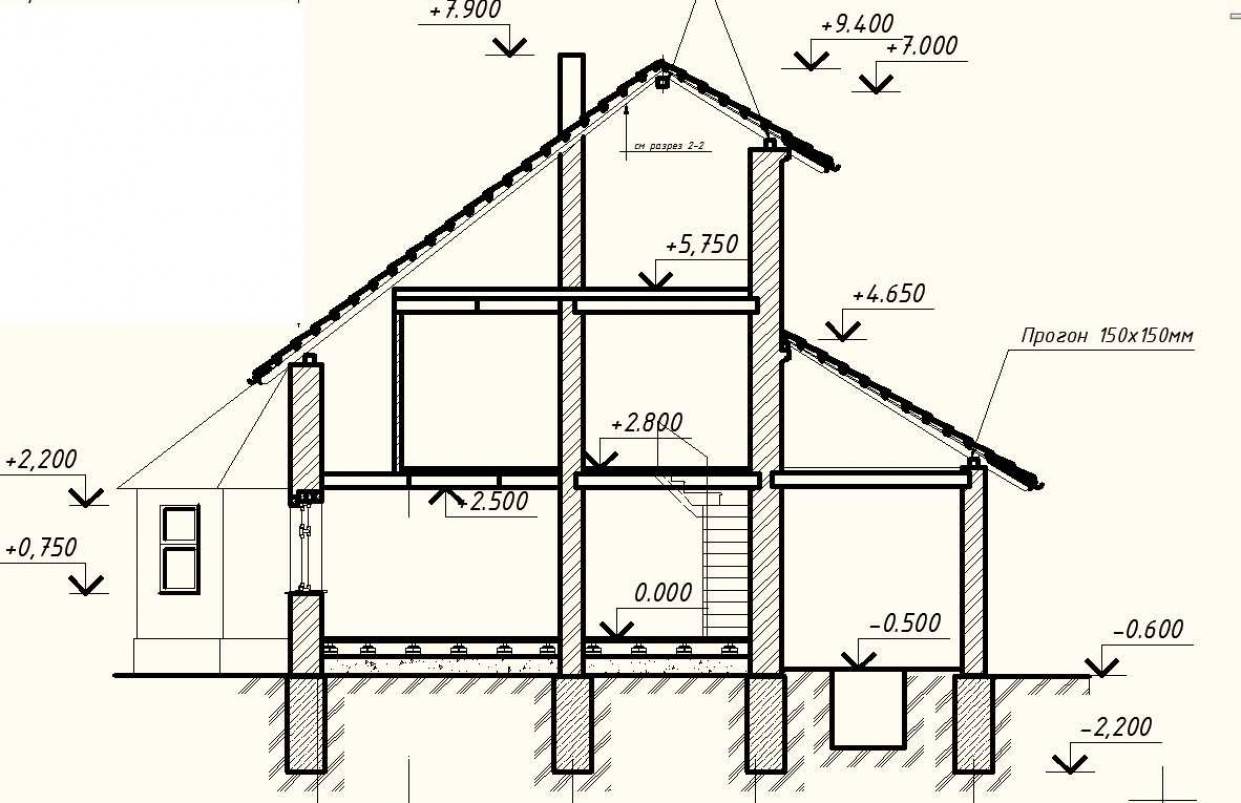 Даже этот минимум предвещает большие сложности. Рельеф перед фасадом здания следует резко понизить, чтобы построить въездной пандус и площадку около ворот гаража. Формально, следует заглубить часть фундамента на глубину промерзания, отсчитываемой от уровня пола подвала. Но так обычно не делают, пытаясь решить вопросы защиты грунта любым иным способом.