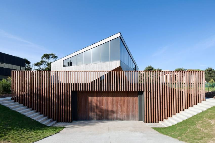 Совмещенный гараж подходит для домов, которые находятся в непосредственной близости от той части ограждения, где оборудован въезд на участок. В этом случае подъездная площадка часто совмещается с дорожкой, ведущей к главному входу. Если же здание размещено в дальней части участка, совместная планировка неоправданна, так как подъезд к дому займет большую площадь земли.
