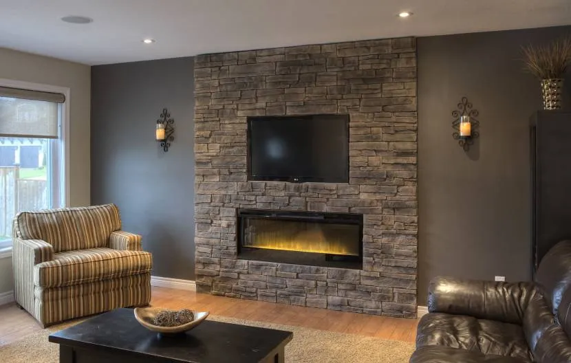 Укладка искусственного камня елочкой в интерьере