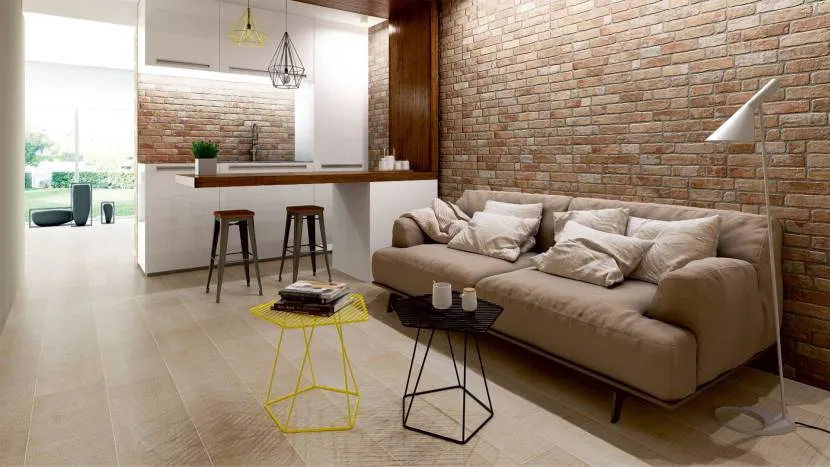 Плитка под кирпич популярна для отделки интерьеров стиля лофт, как на фото, ведь не всегда есть возможность построить в квартире настоящую кирпичную стену. Ее грубая фактура хорошо подходит для этого направления. Плитка под камень используется в различных архитектурных стилях.