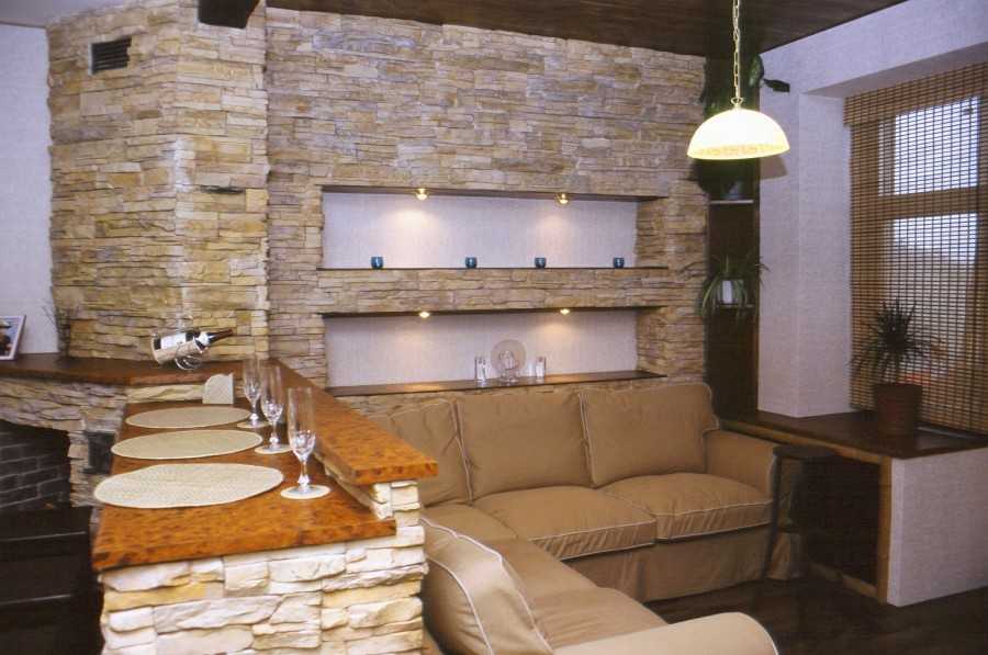 Искусственным камнем или кирпичом из гипса можно отделать как все помещение, так и одну стену или небольшой ее участок. Часто с помощью этого материала создают акценты в интерьере: им отделывают ниши, камины, колонны.