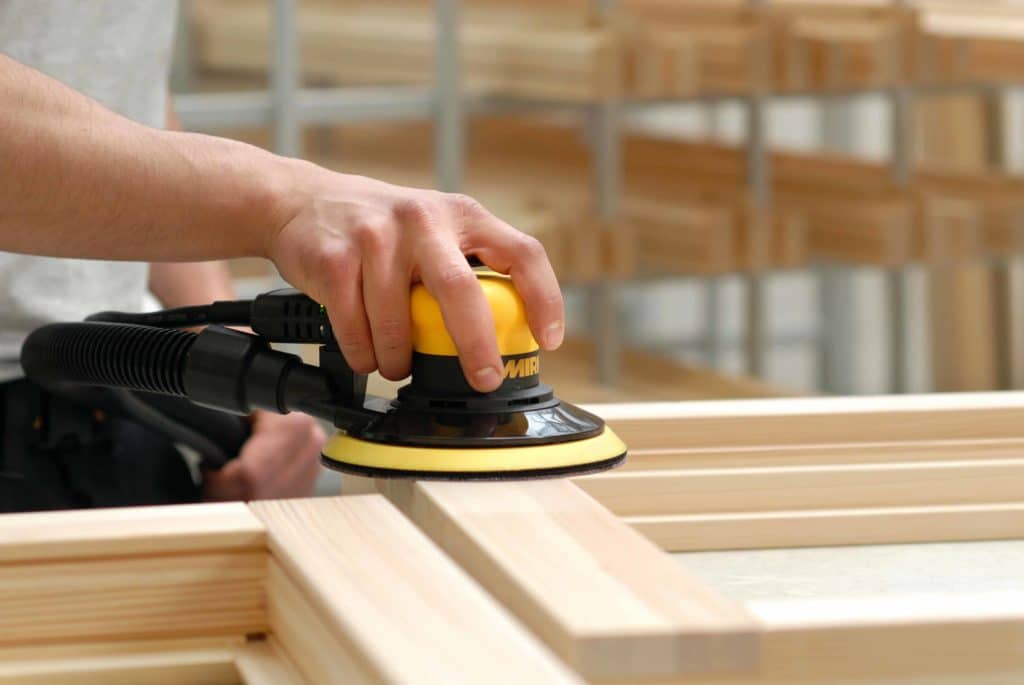 Чтобы упростить работу, используют брусок – его оборачивают шлифовальной шкуркой и обрабатывают ровные поверхности. При этом следует учитывать технологию обработки дерева: движения должны быть направлены вдоль волокон, чтобы не травмировать поверхность.