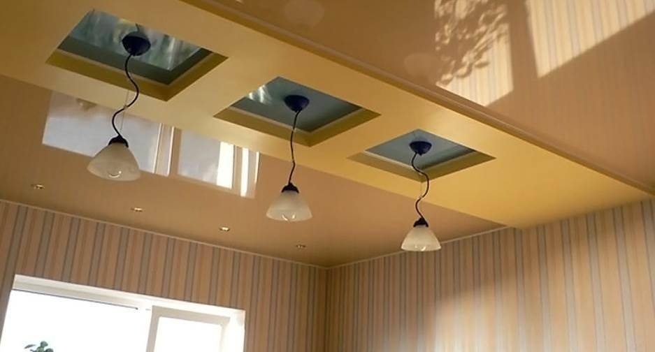 Отделка потолка — эта часть помещения должна быть идеально ровной. Добиться подобного эффекта проще всего с помощью натяжного потолка.
