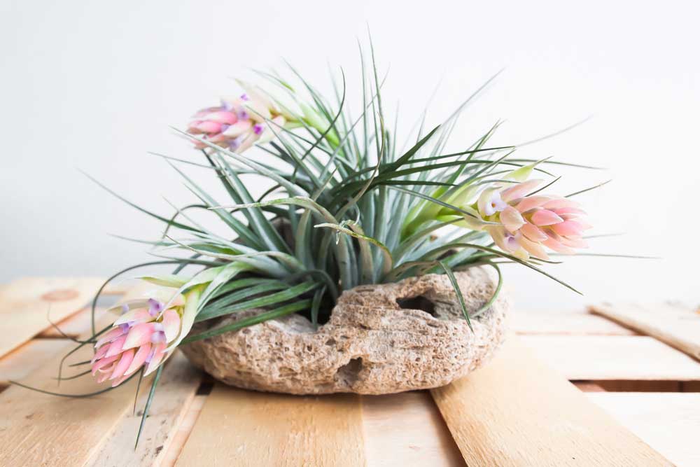 Тилландсии атмосферные – это экзотические растения, которые не нуждаются в земле для укоренения, впитывая все необходимое из воздуха. В связи с этим с тилландсиями создают удивительные по красоте композиции на камнях, деревянных подставках и корягах. Такие композиции иногда делают подвесными или размещают во флорариумах – в результате получается довольно необычный элемент декора, который никого не оставит равнодушным.